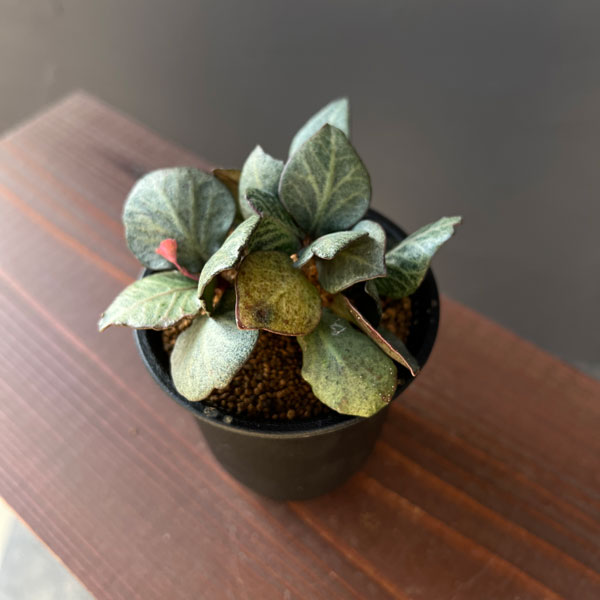 同じ株を冬に撮影。赤みをもった葉脈によって赤く見える。季節(温度)によって葉の色を変える。植物にとってはストレス状態だとは思うが、葉の変化を楽しめる。