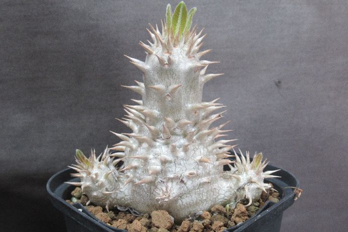 上の写真から2020年シーズンを超えた実生のパキポディウム・エブレネウムです。少し特徴が出てきたように思えます。密集しすぎなのかやや徒長気味のようにも思えます。来春植え替えて上げる必要があると思います。